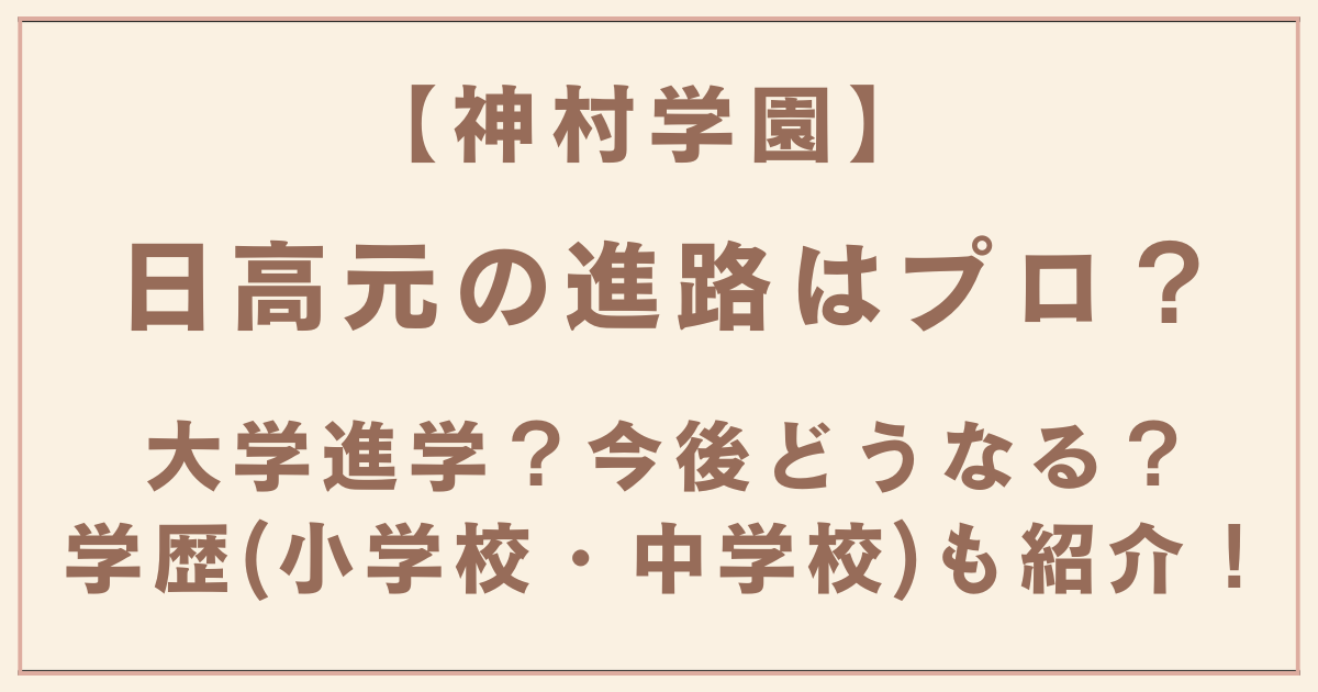 日高元の進路はプロ?大学進学?今後どうなる?学歴(小学校・中学校)も紹介!