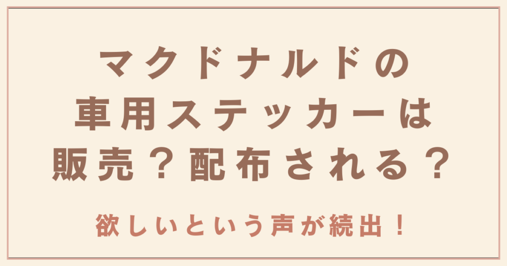 マクドナルドの車用ステッカーは販売?配布されるのか予想!欲しいという声が続出!