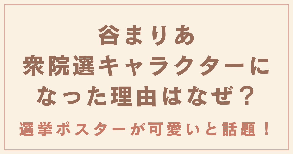 2026年2月8日(日)に行われる衆議院議員総選挙。 その衆院選挙のイメージキャラクターに谷まりあさんが就任しました。 ポスターやそのニュースを見かけた人から、「可愛い」「いつもとイメージが違う」と話題になっています。 そこで今回は、選挙のイメージ... -