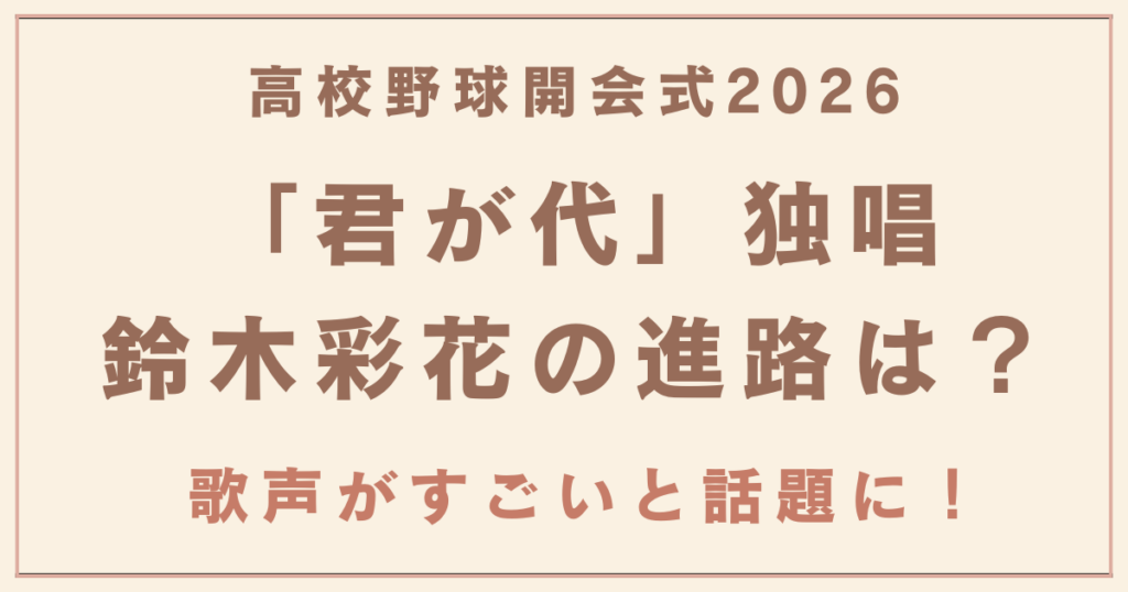 「君が代」独唱の鈴木彩花の進路は?歌声がすごいと話題に!高校野球開会式2026