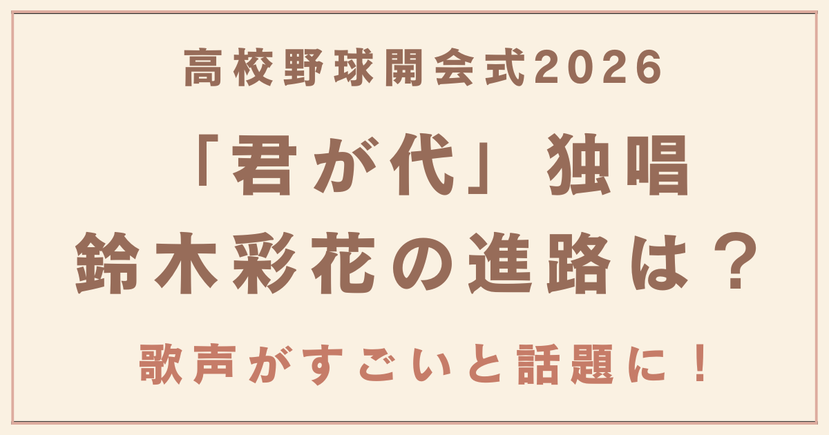 2026年3月19日に開幕した第98回選抜高校野球大会の開会式で、秋田県の聖霊学園高校の鈴木彩花さんが君が代を独唱しました。 その歌声に「高校生とは思えない」「すごい!」といった感動の声とともに今後の進路が話題になっています。 そこで今回は、鈴木彩... -