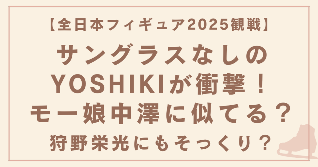 2025年12月21日、全日本フィギュア選手権2025の最終日。 島田麻央選手のフリー演技にYOSHIKIさんの曲「Miracle」が流れ、彼がVIP席で観戦する姿が中継されました。 トレードマークのサングラスはなく、ベージュのコート姿に「誰だかわからない」と驚きの反... -