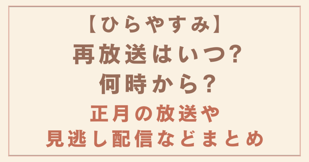 【ひらやすみ】再放送はいつ?何時から?正月の放送や見逃し配信などまとめ