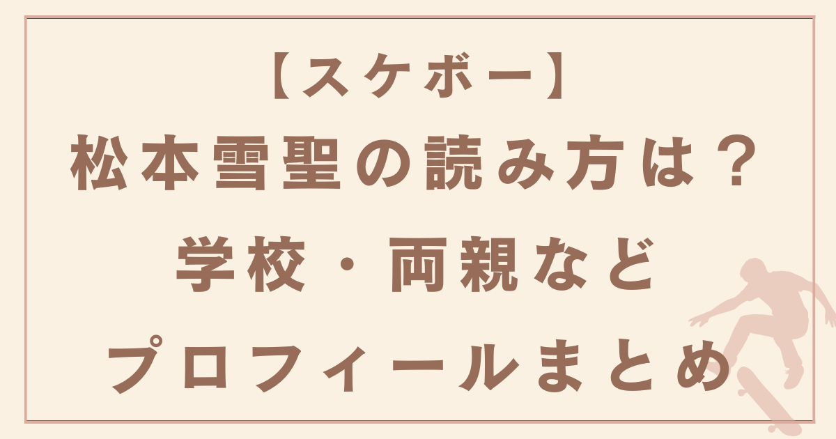 スケボー 松本雪聖の読み方・プロフィール