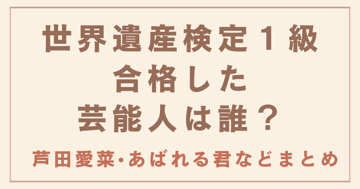今回は、女優の芦田愛菜さんが「世界遺産検定1級」を合格したことをきっかけに、同じく1級に合格している芸能人が他にいるのか?また検定の内容や難易度、勉強法などについてまとめました。